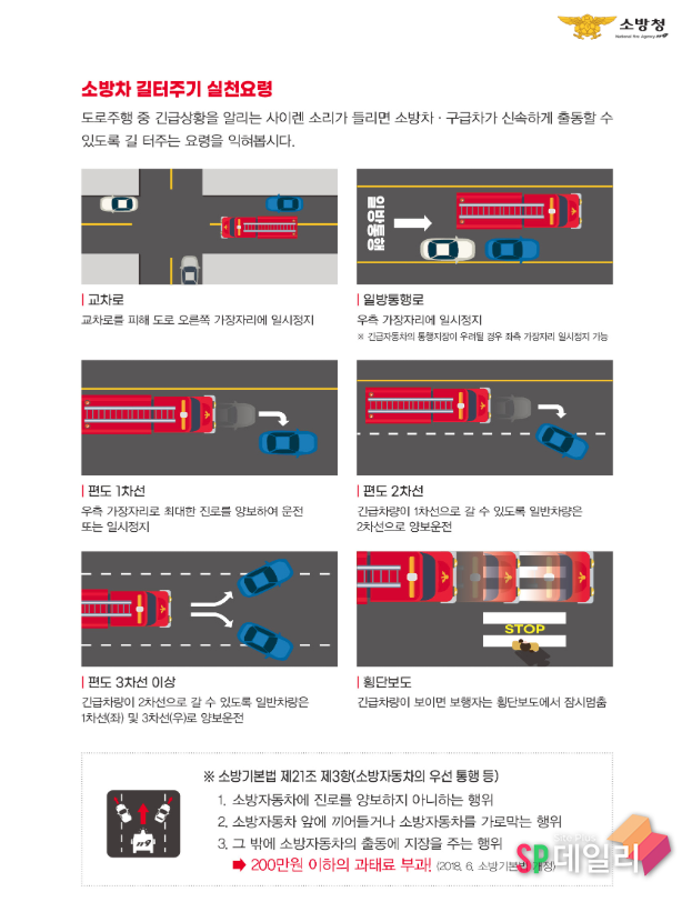 [ SP데일리 김지훈 기자 ] 앞으로 소방차, 구급차 등이 적시에 현장에 도착할 수 있도록 긴급자동차의 원활한 도로 통행을 위한 제도적 기반이 마련될 것으로 기대된다.